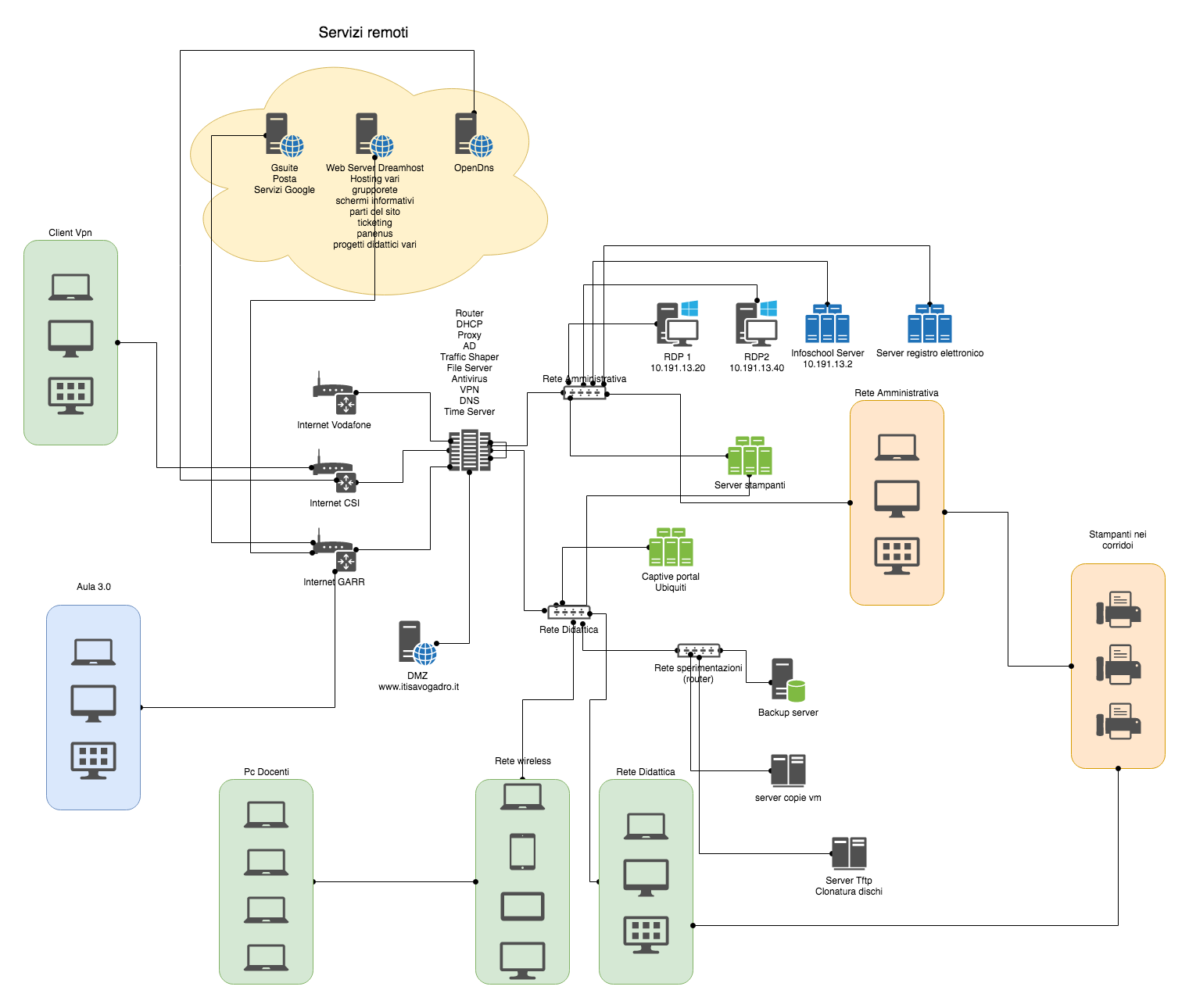 Ecco come si presenta la nostra rete in uno schema sintetico con descrizione dettagliata delle zone.